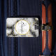 Étiquette À Bagage Marbre blanc moderne avec Monogramme de ruban or