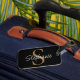This personalized black luggage tag features elegant script typography and a gold monogram. It is easily customizable.