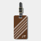 Un arrière - plan brun chocolat aux rayures diagonales blanches au centre de l'étiquette. Avant de la balise a un monogramme personnalisable tandis que arrière de la balise a le nom et les champs d'informations de contact.