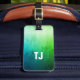 Conception personnalisable élégante moderne d'étiquette de bagage avec l'arrière - plan de vert de texture et votre monogramme blanc audacieux.