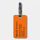 Marque de bagage avec initiale(s)/nom(s) monogramme(s) orange(s) sur un cadre monogramme bande noire, nom et adresse sur un arrière - plan orange. Personnalisez avec vos initiales monogrammes/nom, nom et adresse en utilisant les modèles faciles. La couleur de police, le style de police, la taille de police et la couleur arrière - plan orange sont personnalisables.