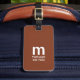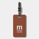 Élégante étiquette de bagage marron personnalisable avec monogramme gras.