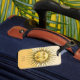 Face de soleil céleste avec bloc colorimétrique géométrique arrière - plan et texte doré personnalisable pour monogramme