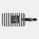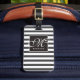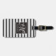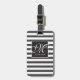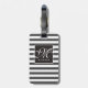 Étiquette À Bagage Monogramme de script rayé gris et blanc classique