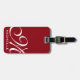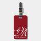 bagage rouge personnalisé avec sangle en cuir : monogramme de gros caractères et nom