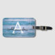 Étiquette À Bagage Monogramme en bois rustique bleu Nom et initiale