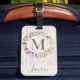 Étiquette À Bagage Monogramme en bois vieilli Fleurs blanches