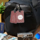 Offrez à votre style de voyage un coup de pouce moderne avec cette étiquette de bagage motif monogramme avec des coeurs et cercles bruns et blancs roux et blancs. Personnalisez-vous en ajoutant votre nom et votre initiale monogrammée au cadre de cercle tendance.
