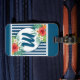Étiquette À Bagage Monogramme moderne à rayures et fleurs bleues