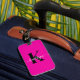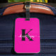 Cette étiquette simple et élégante de bagage rose chaud avec votre prénom dans une police de script tendance en blanc et votre première initiale dans une police casquette moderne en noir sur un côté et une diapositive dans la carte pour votre nom, adresse et numéro de téléphone sur l'autre serait fabuleux sur vos valises. C'est design, tendance et pourtant très classique.