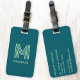 Étiquette À Bagage Monogramme Nom initial Simple Turquoise Pistachio