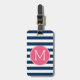 Étiquette À Bagage Monogramme rose chaud Motif rayé blanc et marine
