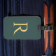 Étiquette À Bagage Monogramme Simple Vert Or
