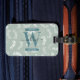 Étiquette À Bagage Monogramme turquoise vert Feuille
