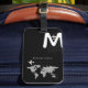L'image de la carte du monde et d'un petit avion + votre nom et votre initiale... une étiquette noire design pour identifier vos bagages