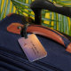 Une belle et paisible peinture de coucher du soleil d'océan avec une mouette solitaire honore en vol celui-ci d'une étiquette aimable de bagage. La mouette de vol est reproduite sur l'arrière, comportant votre nom et numéro de téléphone.