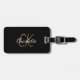 Étiquette À Bagage Noir or monogramme initiales nom script élégant