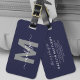 Étiquette À Bagage Nom de la marine Blue Elegant Monogramme