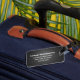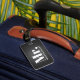 Voyagez dans le style avec cette étiquette masculine de bagage pour des mariés et des nouveaux mariés. Caractéristiques de conception ce un arrière - plan de cuir de noir de faux avec "M." et de votre nom de famille dans une typographie gris-clair moderne de manuscrit. Le dos de l'étiquette de sac a vos détails de contact qu'il faut que vous personnalisiez dans gris-clair sur un arrière - plan noir de cuir de faux. Conçu par l'artiste Coffey ©Susan.