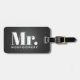 Étiquette À Bagage Nom de M. Black Leather Script Monogrammed