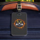 Cette étiquette élégante et personnalisée pour les golfeurs a un monogramme d'un côté et le nom, le numéro de téléphone et l'adresse e-mail de l'autre côté. Tous peuvent être customisés avec vos propres informations. Le design moderne est une balle de golf et des clubs de golf avec des initiales entourés d'une bague de feu orange et jaune sur le noir. Cela fait un cadeau particulièrement parfait pour le golfeur passionné qui est aussi un voyageur afin qu'ils puissent utiliser cette étiquette personnalisée sur leurs bagages.
