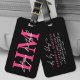 Créez Votre Propre Élégant Monde Personnalisé Voyageur Fille Noir et Rose Chaud Monogramme Monographie Nom Balise. Cette étiquette de bagage audacieuse et personnalisée ajoute une touche chic à toute aventure de voyage, parfaite pour le voyageur élégant ou toute personne ayant un amour pour la découverte. L'avant présente un monogramme serif à deux lettres magenta rose chaud à l'aide des initiales dernières et initiales, empilé verticalement contre un arrière - plan noir élégant. Votre nom complet est centré entre les initiales en blanc immaculé écriture manuscrite pour un look moderne et féminin. Le dos a un arrière - plan noir assorti avec des polices blanches, avec l'expression "Ce sac appartient à" dans le même style de script. Votre nom est mis en surbrillance en rose chaud, tandis que les informations de contact apparaissent en blanc à l'aide d'un mélange de polices serif et de scripts gras pour un contraste élégant. Toutes les couleurs peuvent être customisées, vous pouvez donc ajuster la couleur de l'arrière - plan, du monogramme, de la police ou du texte en fonction de votre style. Ce bagage personnalisé fait un cadeau amusant et pratique pour une petite fille, une soeur sororité, une mère ou un amant du voyage, parfait pour les anniversaires, les vacances ou simplement pour la raison.