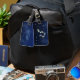 L'étiquette bleu-foncé de bagage pour un Verseau, avec briller tient le premier rôle former la constellation.