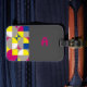 Numéro de bagage minimaliste abstrait géométrique fuchsia bleu jaune nom. Pour maman, fille et grand-mère.