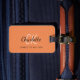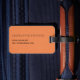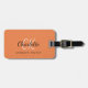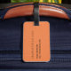 Impression en faux cuir orange en arrière - plan. Personnalisez et ajoutez votre prénom, vos lettres monographiques et votre nom complet sur le devant. Vos coordonnées au verso. Texte noir.