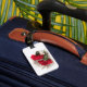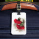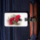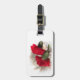 Customisez facilement le revers de cette étiquette de bagage qui présente l'image de deux oeillets rouges brillants posés sur un arrière - plan en tissu brocart blanc nacré. Faites ressortir vos bagages sur un carrousel d'aéroport !