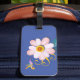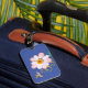 Cette étiquette de bagage brillante et colorée présente ma conception d'un oiseau Humming volant vers une fleur imaginaire. Un excellent moyen de faire ressortir vos bagages du reste.
