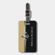 Ces étiquettes noires de bagage de Silver Fleur de Lis d'or vous aideront à maintenir votre bagage dans le style. Les étiquettes de bagage comportent un noir de deux tons et un arrière - plan d'or divisés par une rayure argentée décorée d'un symbole de Fleur balayé par imitation de lis en métal. Le dos comporte le même symbole sur un arrière - plan balayé par imitation en métal. Personnalisez avec votre nom sur l'avant et information de contact sur le dos.