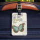 Studio de Pela de ©/Apple sauvage. Un papillon bleu et brun avec une fleur pourpre. Il y a une silhouette de papillon à l'arrière-plan aussi bien qu'aux mots de Français.