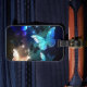 Fabuleux, brillant, bleu et jaune, papillon de nuit sur arrière - plan foncé.