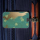 Un tableau d'un arrière - plan d'or avec quelques petits trèfles verts. L'arrière - plan est un or profond avec des coups de pinceau doux. Les trèfles sont d'un vert tendre et sont éparpillés à travers l'arrière - plan. Le tableau est propre et peint dans des couleurs pastel.