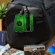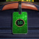 Modèle de bagage de parties scintillant vert vif monogramme. Accents or. Si vous avez besoin d'aide pour customiser un de mes designs, contactez le concepteur ArtOnWear. Mise en forme de texte gratuite avec aide en direct disponible sur demande.