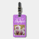 Donnez à maman, grand-mère, petite amie ou amie spéciale une belle étiquette de sac acrylique violet à parties scintillant girly personnalisée avec une photo chère qu'elle peut chérir sur les bagages, sac à main, sac à dos ou autre sac.. La étiquette de bagage comprend maintenant une photo porte-bagages de belles orchidées violettes et blanches. Remplacez la photo de l'espace réservé à l'orchidée par sa photo préférée comme celle d'Instagram ou si vous aimez la photo de l'espace réservé à la floraison de l'orchidée gardez-la. Choix rock. Remplissez les champs du modèle, supprimez le texte ou cliquez sur personnaliser pour sélectionner un style, une taille et une couleur de type que vous préférez.