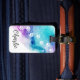 Marque bagage avec des empreintes de pattes blancs sur une pellicule d'aquarelle violet et bleu aqua et votre nom personnalisé.