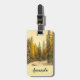 Une étiquette de bagage avec une belle photo nature. Un chemin hivernal isolé avec de grands pins enneigés. Une teinte dorée créera une sensation magique à cette photo.