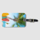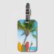 Cette décoration est faite de planches de surf colorées debout dans le sable avec un palmier, une plage et l'océan en arrière - plan. #surf #surfer #fun #cool #beach #tropical #sport #relax #travel #surfing