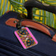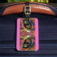 Étiquette pyschedelic rose super de bagage de plots réflectorisés prête à être personnalisé avec votre information sur le dos. Une manière d'amusement de voyager !