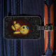 Poupée de chiffon vaudou éffrayante, mais mignonne, faite de tissu de sac, avec un patch sur sa tête, un oeil de bouton et une bouche tristement cousue. Un patch en forme de coeur rouge sur sa poitrine a deux broches qui s'y accrochent. L'arrière - plan est un effet de peinture peeling.