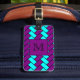 Étiquette À Bagage Pourpre de monogramme et arête de hareng d'Aqua