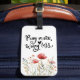 Le tag bagage avec une citation inspirante scripture représente un design fleur sauvage d'aquarelle fleurie avec des pavots rouges simples et de la verdure. Il présente une citation chrétienne encourageante, "Priez plus de souci moins." tirée de la Bible Versets Philippiens 4:6-7.