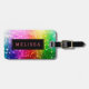 Elégante couleur vive moderne parties scintillant texture imprimé avec étiquette de nom géométrique noire. Ajustez la taille de la balise de nom pour qu'elle corresponde à votre nom.