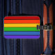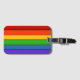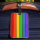 Cette étiquette à bagages comporte des bandes arc-en-ciel.