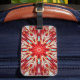 Cette étiquette de voyage présente un rouge vif et des couleurs mélangées, un modèle de mandala de style éclat d'étoile que j'ai créé à partir d'une photo d'une balle de matériaux de soie mélangés. Les couleurs égayeront vos bagages et seront bien visibles de loin.