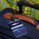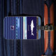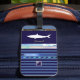 Un motif de différentes rayures bleues avec l'image graphique d'un requin blanc, à personnaliser avec votre nom