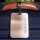 Élégante étiquette monogrammed avec un arrière - plan en or rose brossé à l'ombre. Personnalisez avec votre nom dans un script contemporain.