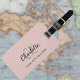 Étiquette À Bagage Rose or rose cuir nom monogramme